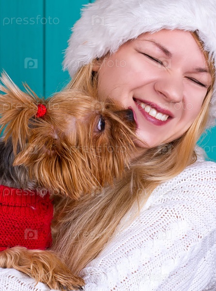 Девушка с собакой на Рождество