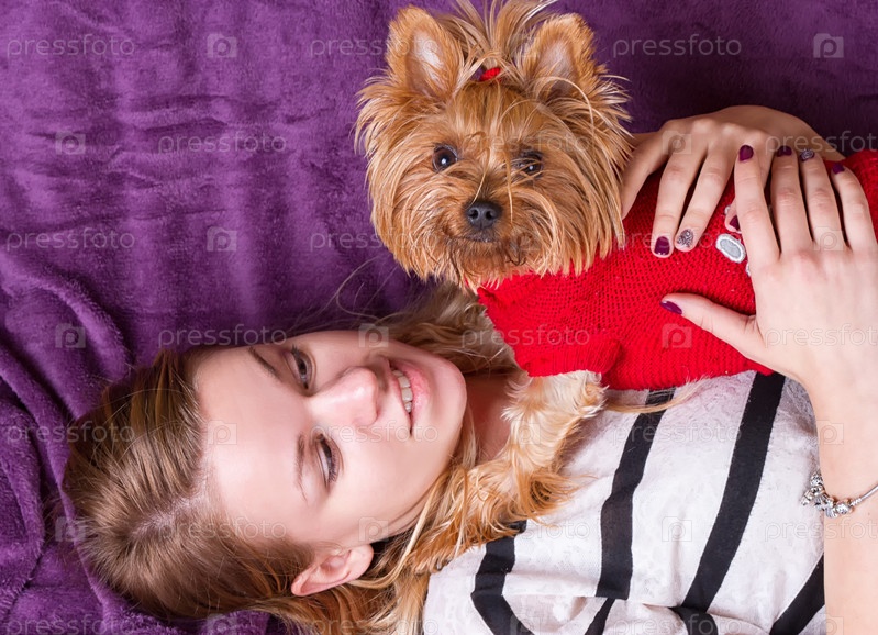 Красивая молодая девушка с йоркширским терьером