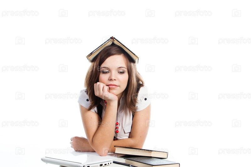 Портрет красивой студентки, которая готовится к экзаменам