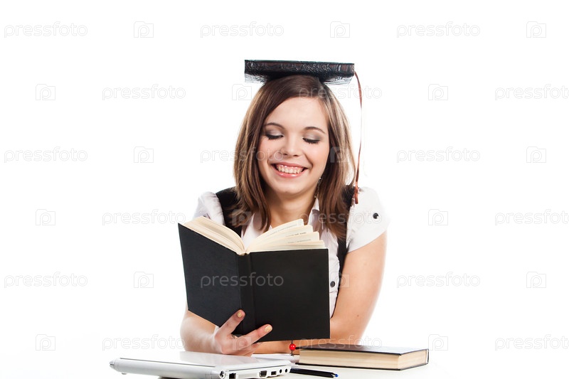 Портрет красивой студентки, которая готовится к экзаменам