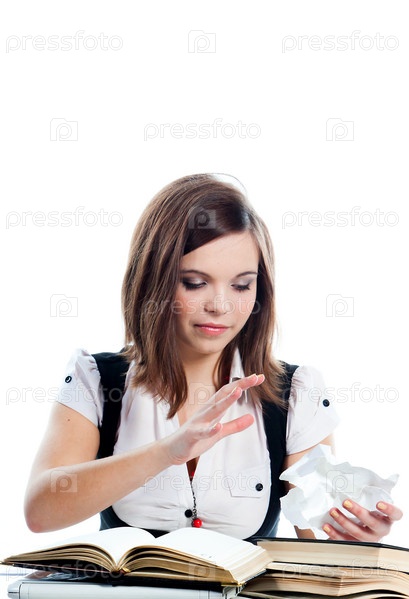 Портрет красивой студентки, которая готовится к экзаменам