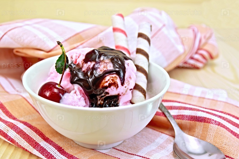 Мороженое вишневое с вафельными трубочками