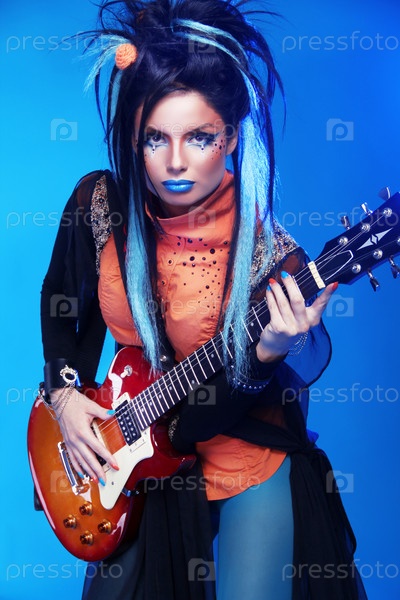 Стильная девушка с гитарой
