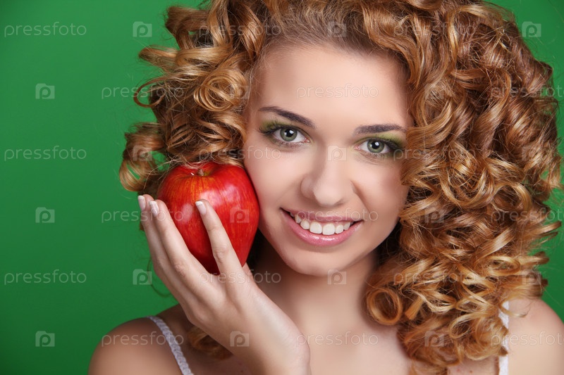 Рыжеволосая девушка с яблоком