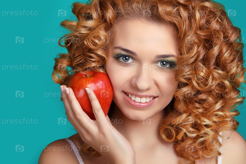 Рыжеволосая девушка с яблоком