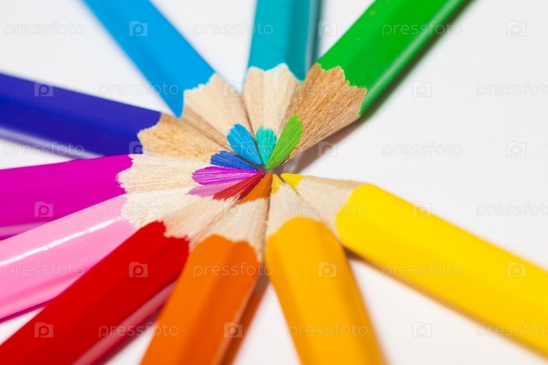 Набор цветных карандашей на белом фоне крупным планом