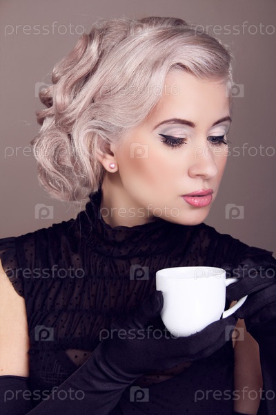 Красивая нежная женщина с чашкой чая