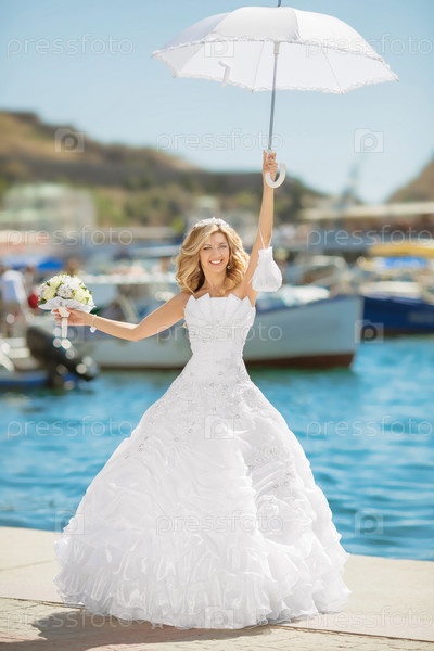 Красивая невеста с зонтиком