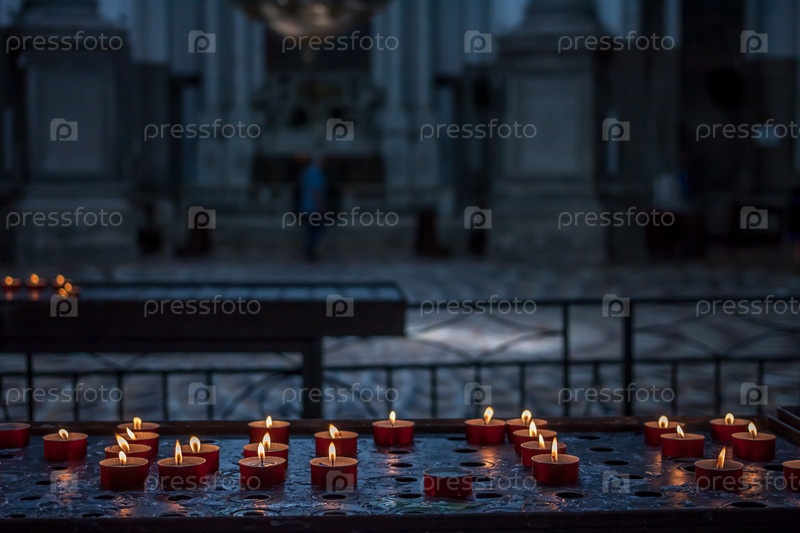 Свечи в темной церкви