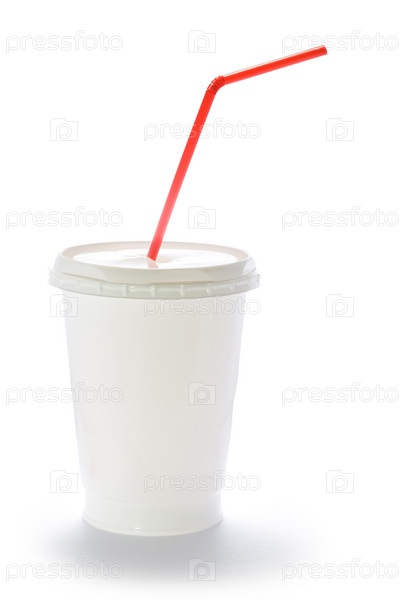 Белый стаканчик с красной соломинкой