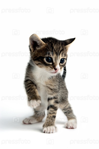 Маленький котенок на белом фоне