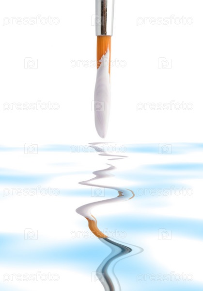 Белая краска на кисти у воды