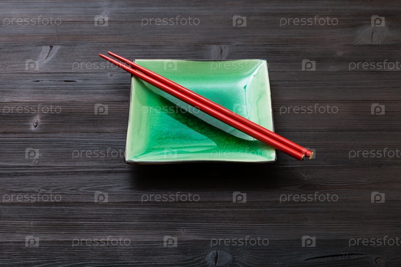 Зеленая тарелка с палочками