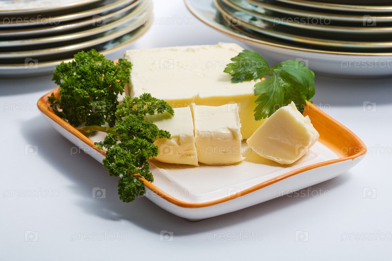 Сливочное масло и петрушка на тарелке крупным планом
