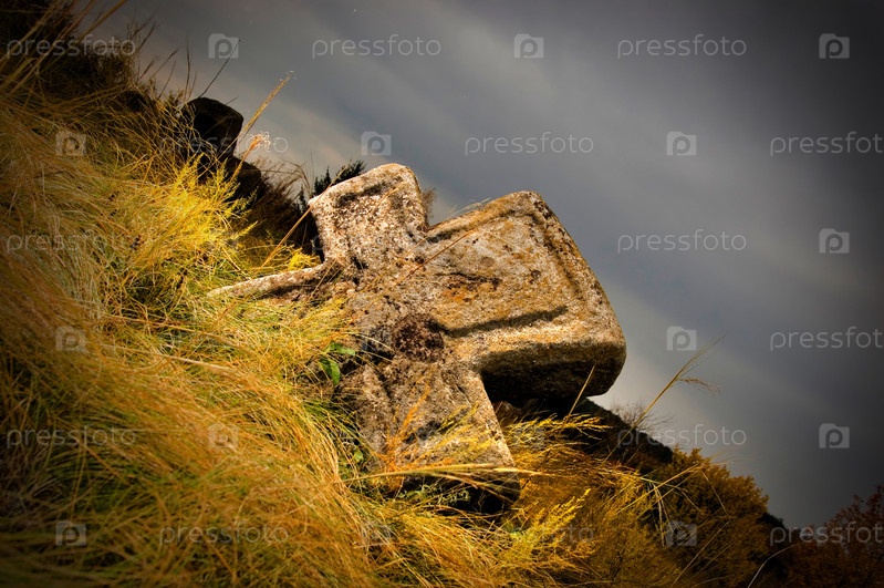 Каменный крест в сухой траве