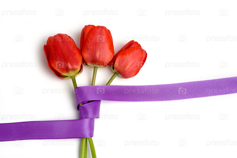 Красные тюльпаны с фиолетовой лентой