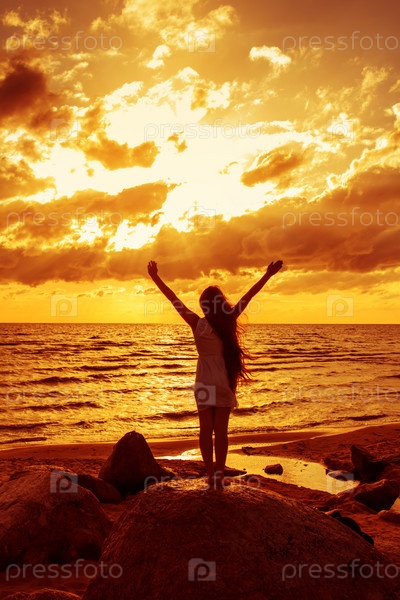 Девушка на берегу моря на закате