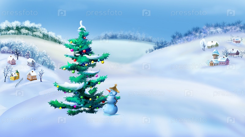 Пейзаж с Новогодней елкой