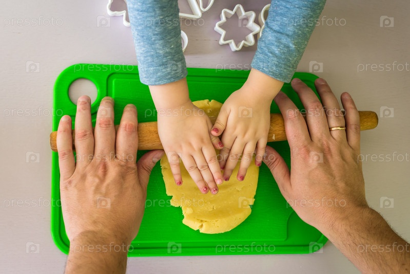 Отец и дочь катают тесто
