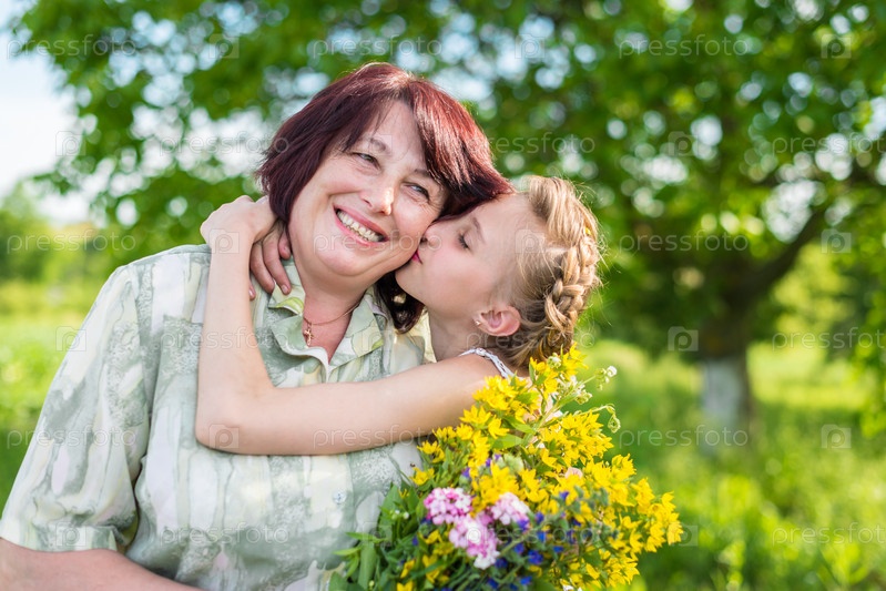 Внучка целует бабушку