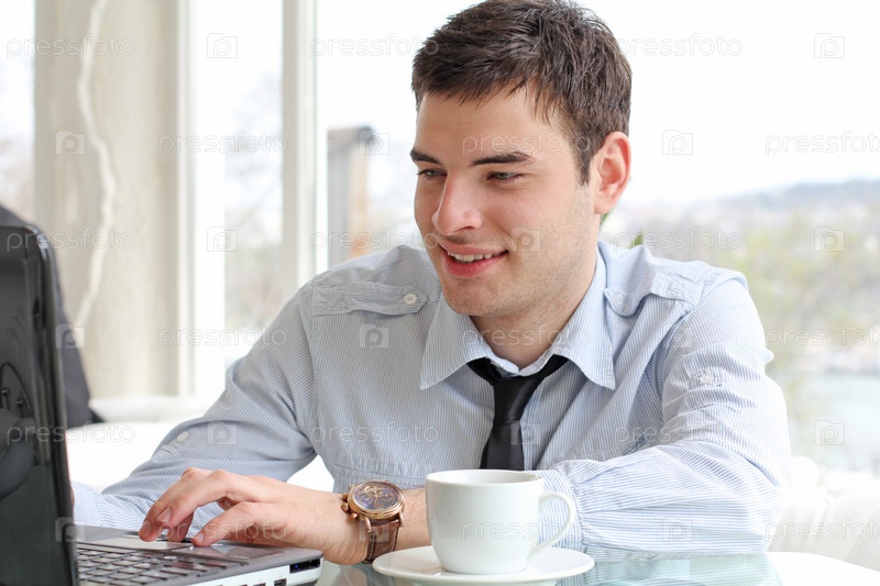 Мужчина работает за ноутбуком