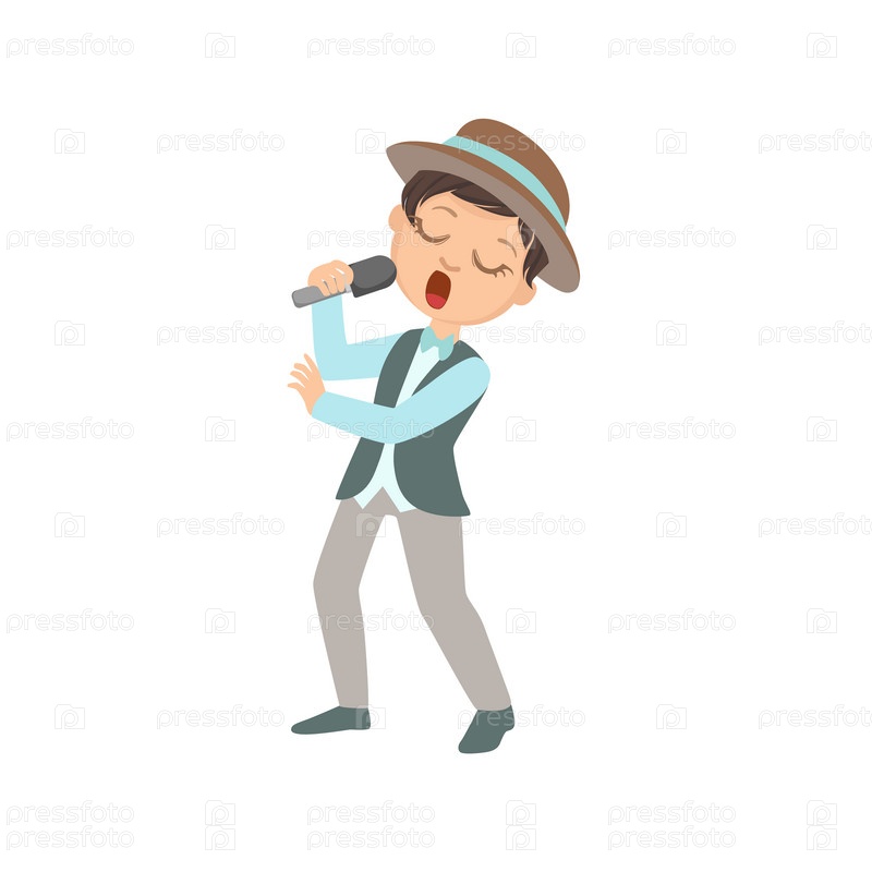 Мальчик поет в караоке