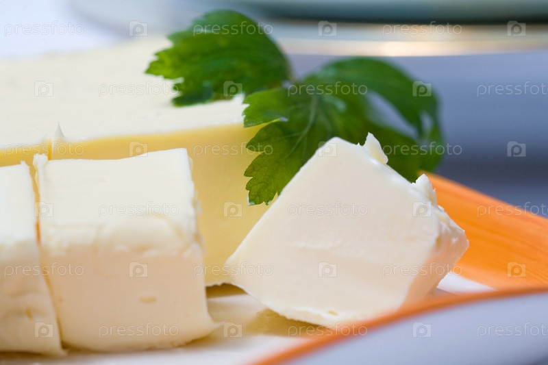 Кусочки сливочного масла и петрушка на столе