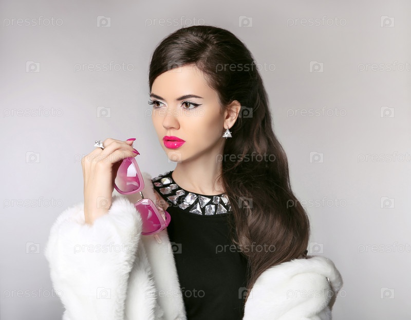 Красивая брюнетка в шубе