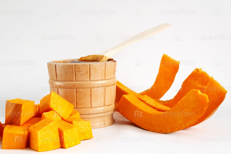Кусочки тыквы и бочонок меда