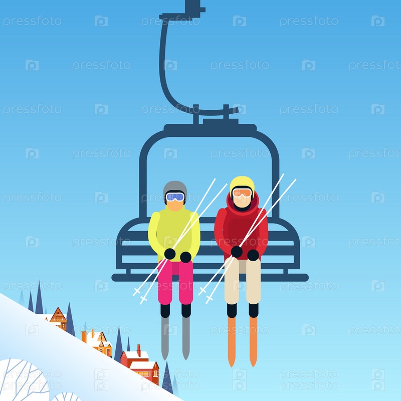Лыжники на подъемнике
