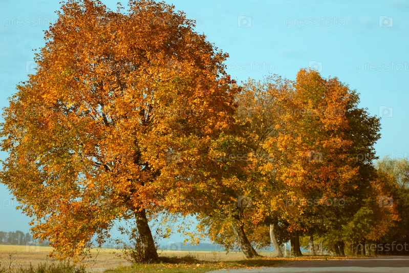 Желтые деревья возле дороги