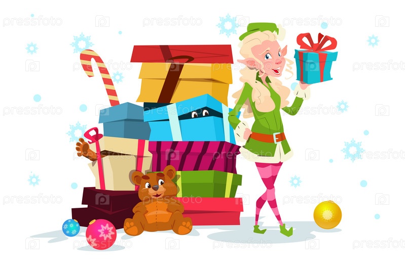 Рождественский эльф с подарками