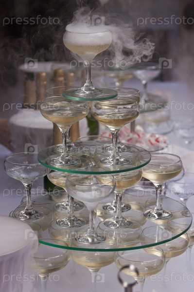 Пирамида бокалов с шампанским