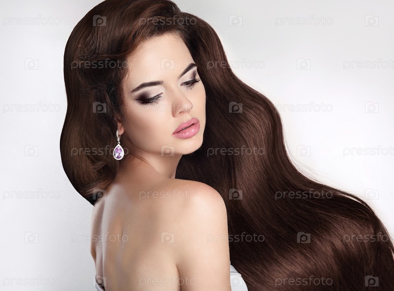Брюнетка с длинными блестящими волосами