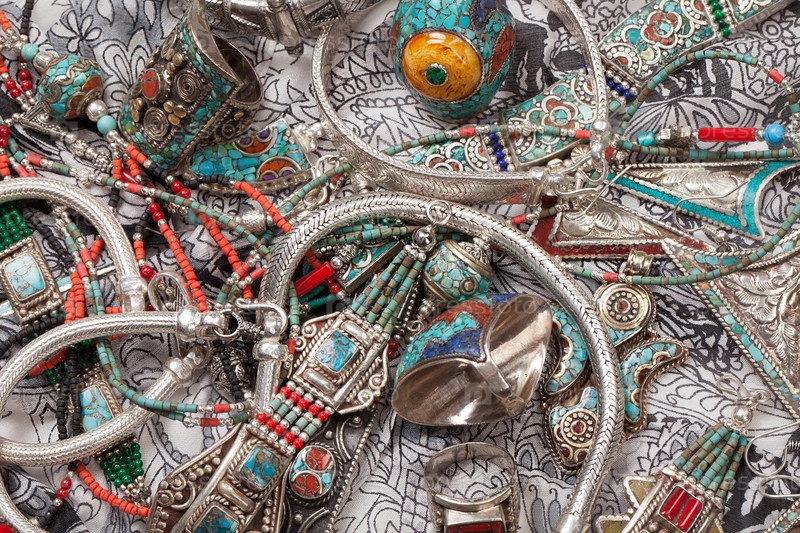 Украшения ручной работы на фоне ткани