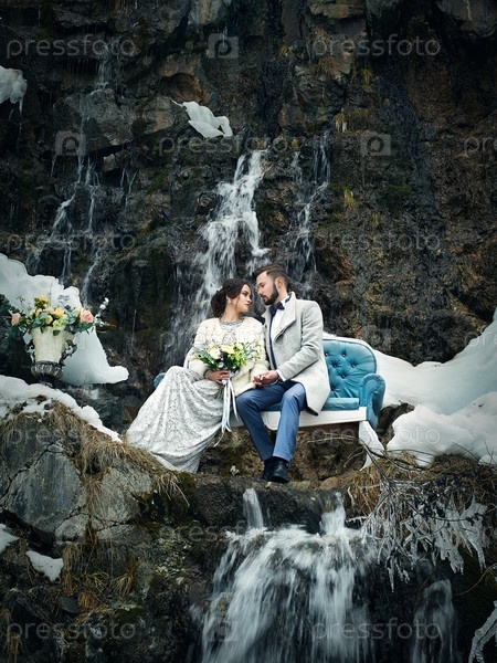 Счастливая пара на скале
