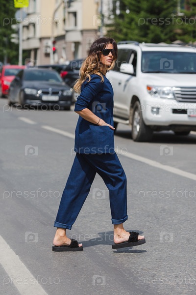 Девушка переходит дорогу