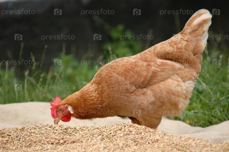 Курица клюет зерна пшеницы