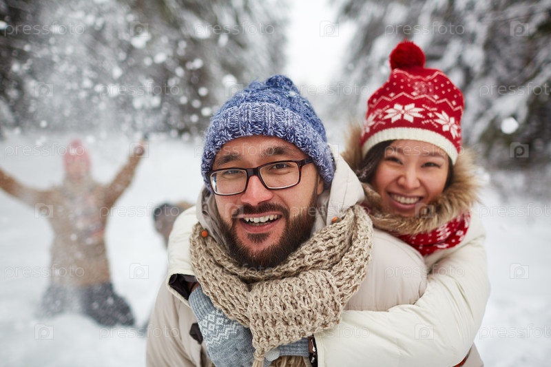 Счастливая пара наслаждается зимой