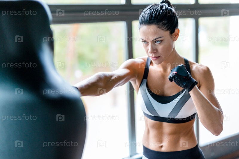 Девушка занимается боксом