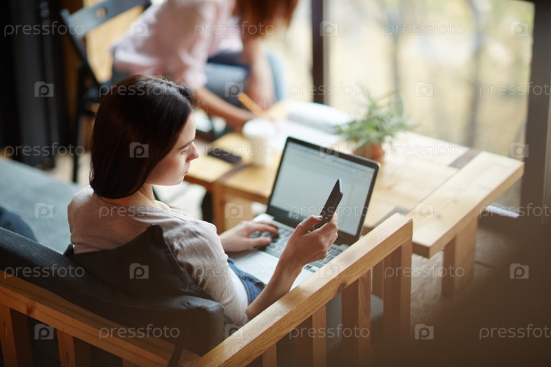 Девушка со смартфоном и ноутбуком