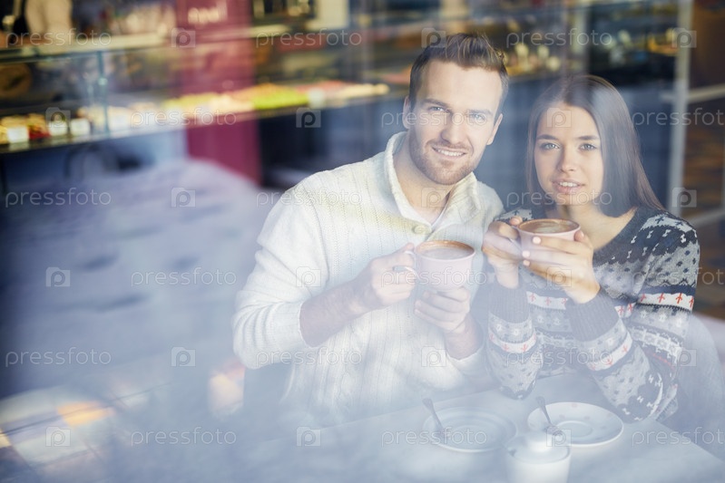 Счастливая пара в кафе