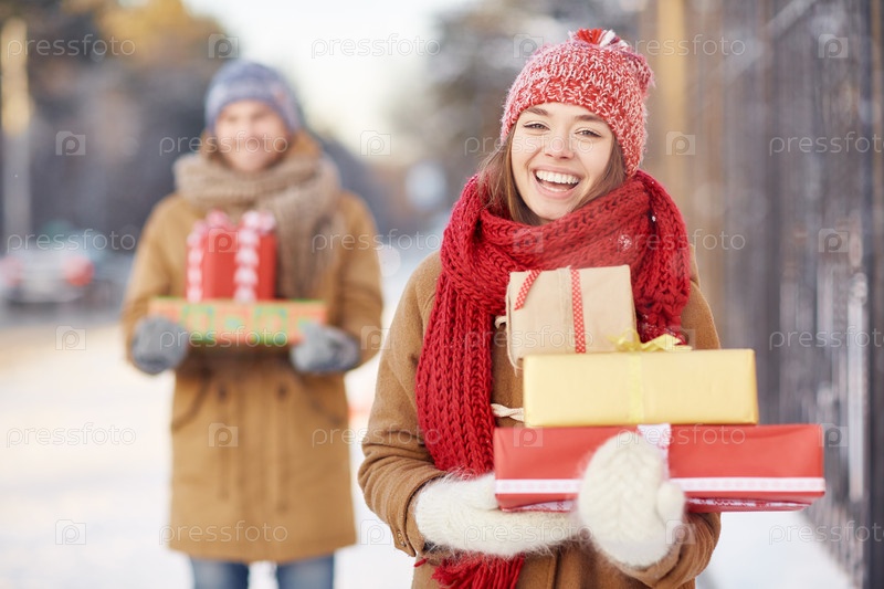 Пара с рождественскими подарками