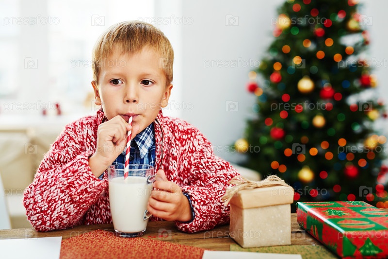 Мальчик пьет молоко