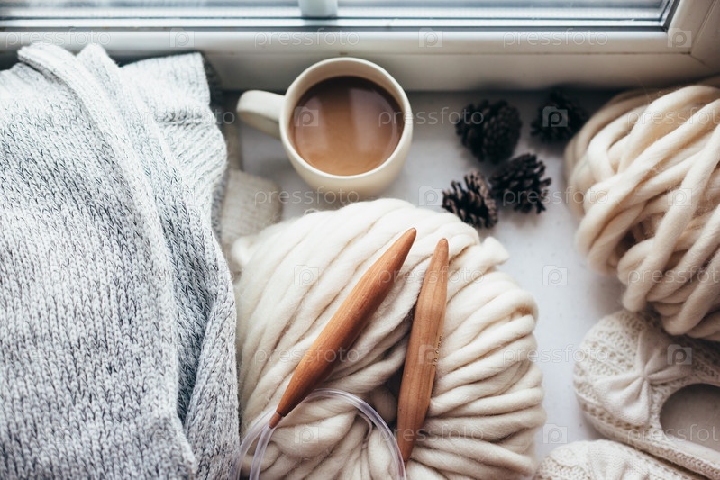 Зимние вещи и чашечка кофе
