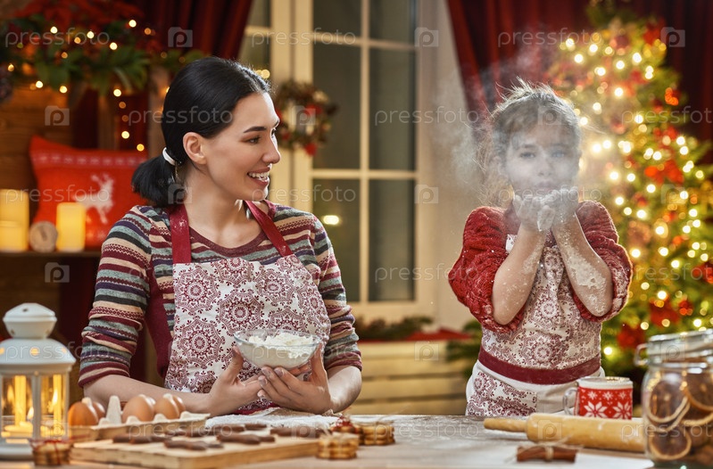 Мать и дочь готовят Рождественское печенье