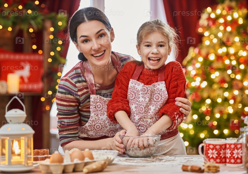 Мать и дочь готовят Рождественское печенье