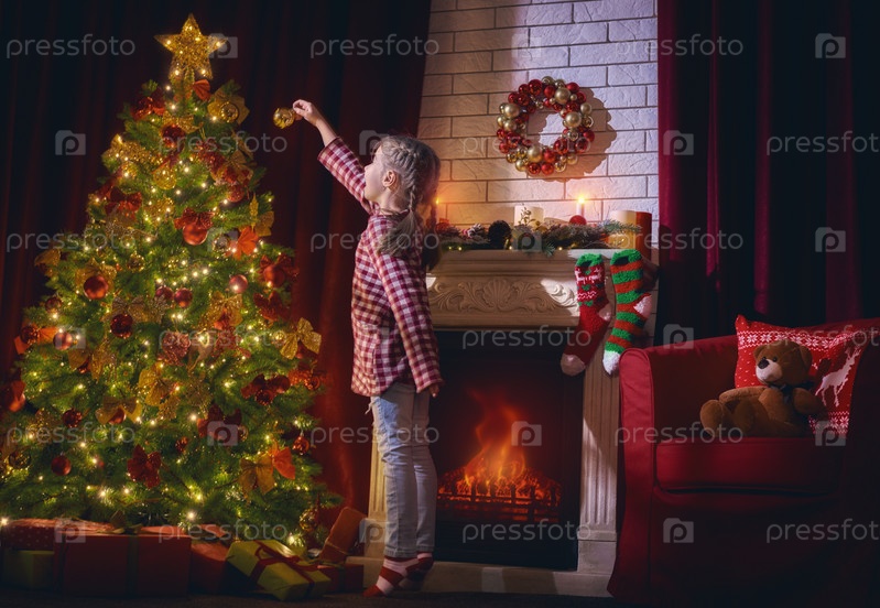 Девочка украшает елку
