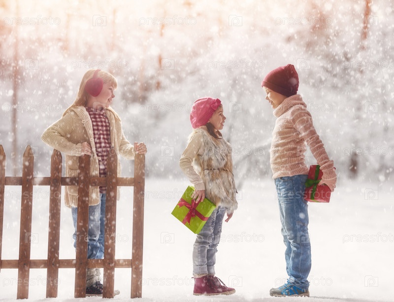 Дети с рождественскими подарками