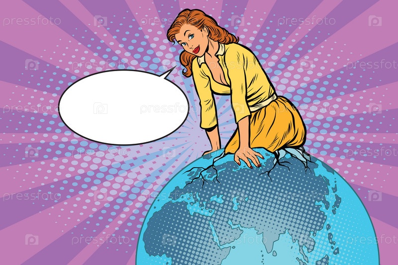 Красивая женщина на глобусе